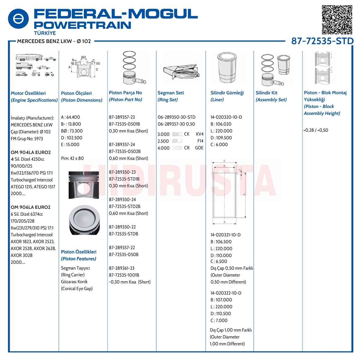 Part No: 79228600 A3022STD A9260330062, A9060330962, A9060330562