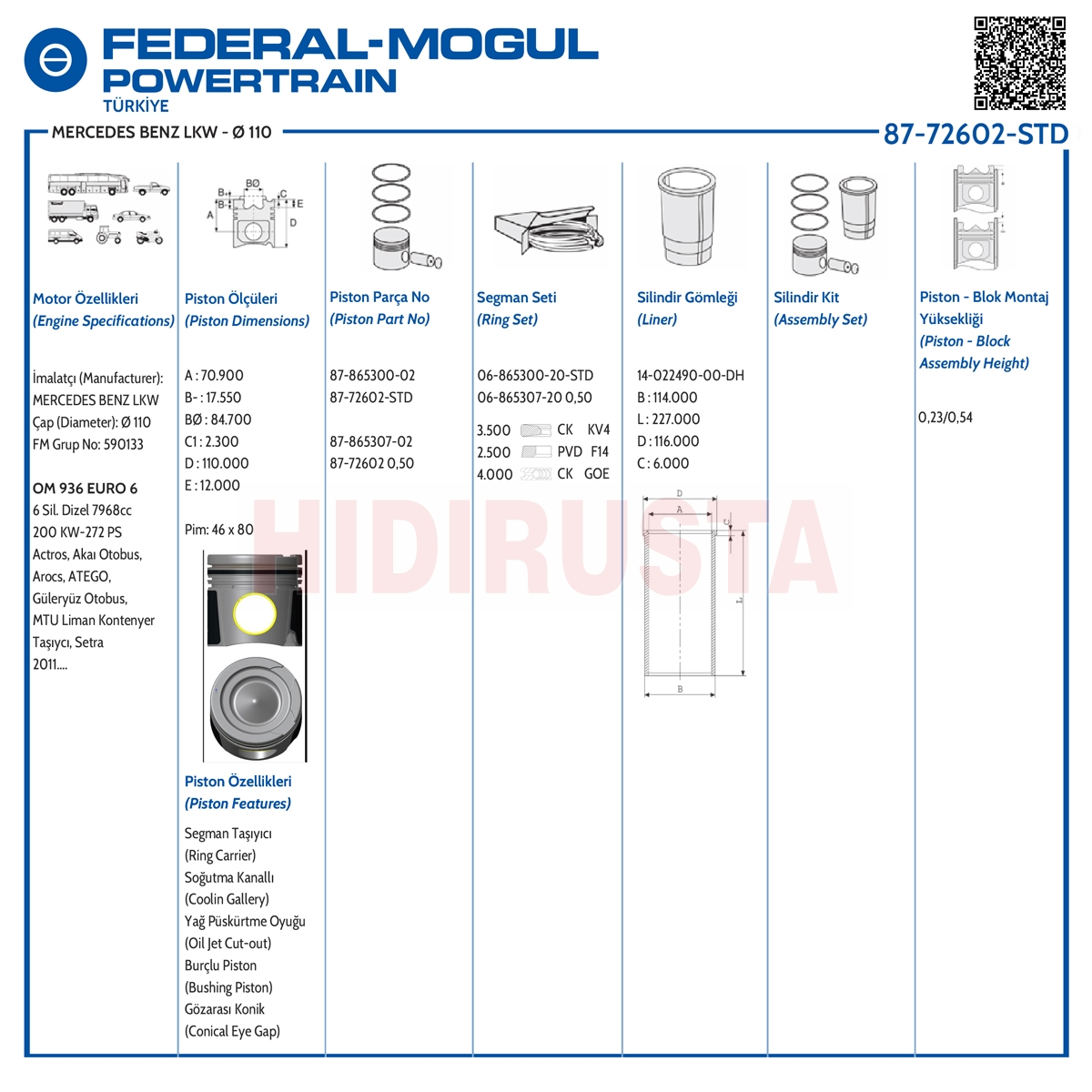 Part No: 8772602STD 8772602050 A9360302317, A9360300817, A9360300617